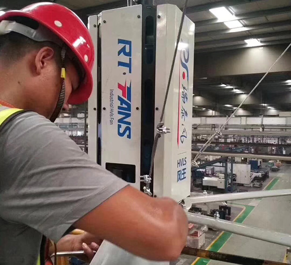 作為國(guó)內(nèi)研發(fā)、生產(chǎn)工業(yè)大風(fēng)扇的生產(chǎn)廠家,品質(zhì)性能卓越,銷量一直處于市場(chǎng)前列。經(jīng)過(guò)細(xì)致比較,瑞泰風(fēng)工業(yè)大風(fēng)扇非常適合三雄極光公司肇慶工廠使用,遂很快決定,第一批購(gòu)買10臺(tái)7.3米直徑工業(yè)大風(fēng)扇,為其工廠員工進(jìn)行通風(fēng)降溫改造。使用時(shí),超大覆蓋面的輕柔的立體微風(fēng),令人體感十分舒適,車間通風(fēng)無(wú)死角,獲得了員工及管理層的一致好評(píng)。