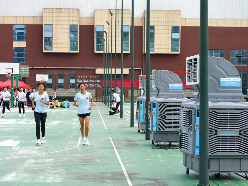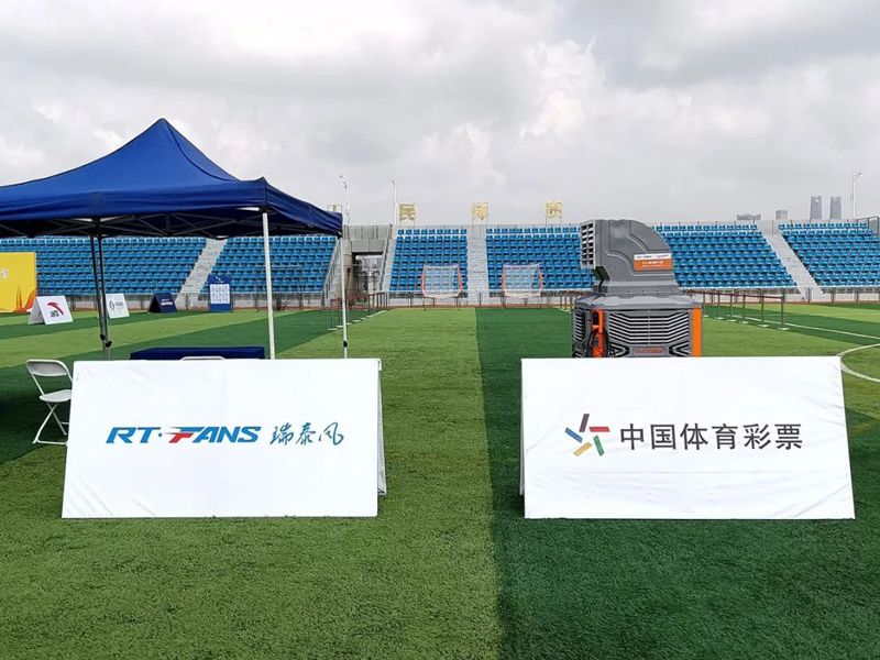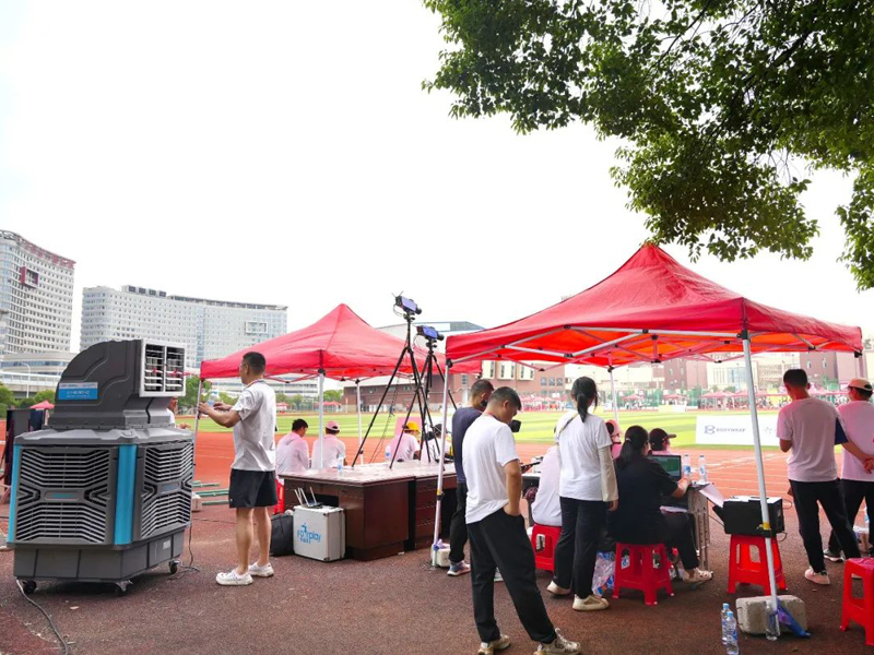 本次活動期間,瑞泰風經過現場實地考察,科學規劃,一次性投放了30套移動冷風機設備,其中包括經典版和體育版兩個系列產品,降溫效果顯著,安裝使用也非常便捷,確保各項室內、戶外賽事活動的順利開展。移動冷風機是一款節能環保的降溫設備,尤其適合戶外使用,僅需2分鐘即可將35℃的高溫降低到26~27℃,達到人體最舒適,也是多類體育項目最適宜的溫度環境。此外,移動冷風機送風距離遠,覆蓋范圍廣,單臺設備的送風距離可達30米,并且有效覆蓋120°扇形區域。