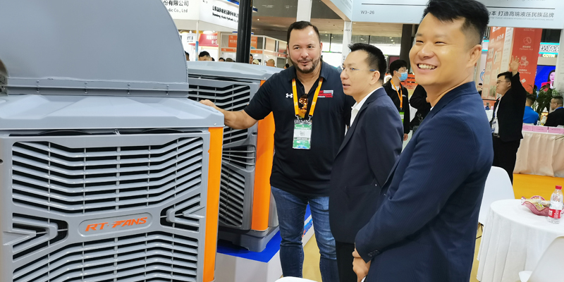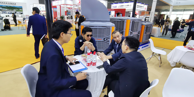 瑞泰風經過精心籌備,并憑借精湛的產品技術水準,高大空間低碳通風降溫設備再次成為展覽會中一大亮點。擁有獨具匠心的產品,現場吸引了眾多中外客商的駐足觀看與咨詢洽談,并解決了意向購商的降溫問題,經過現場工程師及銷售精英對技術解決與方案優化,眾多客戶大為滿意,現場達成購貨意向并簽單,未來幾天期待收獲碩豐,滿載而歸。